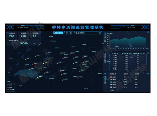 唐山柳林水資源監(jiān)控管理平臺包含水資源監(jiān)測一張圖、GIS地圖、實時數(shù)據(jù)顯示、歷史數(shù)據(jù)查詢、報表統(tǒng)計、報警數(shù)據(jù)、巡檢管理和日志查詢等功能板塊,并可根據(jù)客戶需求定制調(diào)度大屏及其他功能板塊開發(fā)。